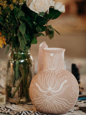 Cada vez que tenía una hoja en blanco para crear una vasija nueva, se me abrian todos los canales, todas las posibilidades.Sin boceto previo me lanzaba hacia ellas. Cada línea buscaba simetría. Cada símbolo buscaba ser visto, nombrado. Cada error, buscaba ser aprendido y transformado. Si fallaba a la izquierda ambos lados debían ser ordenados en busca del equilibrio. La simetría de cada pieza busca evidenciar la igualdad en la que se encuentran la vida y la muerte. La simetría con la que ambas caminan, hacia espacios diametralmente opuestos que nos llevan al mismo lugar.