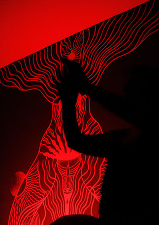 El teatro para mi ha sido toda una sorpresa. Saberme hecho de otras maneras. Empecé a practicar tratro en el 2023 cuando mi maestra Ana Mazhari convocó mujeres de Santa Marta para crear una obra que hablara de la mujer y su libertad. Así se creó la Colectiva ZAN, de la que hago parte desde entonces. Este lugar ha sido para mi un hermoso refugio de sostén y comunidad. Un lugar para expresarnos y sentirnos que podemos ser todo, que podemos ser nosotras y también encarnar todas esas mujeres de las que venimos. Invité a Ana a este espacio en donde a través de un viaje de cuerpo y expresión nos llevó al útero oscuro y acuoso de nuestra mamá-